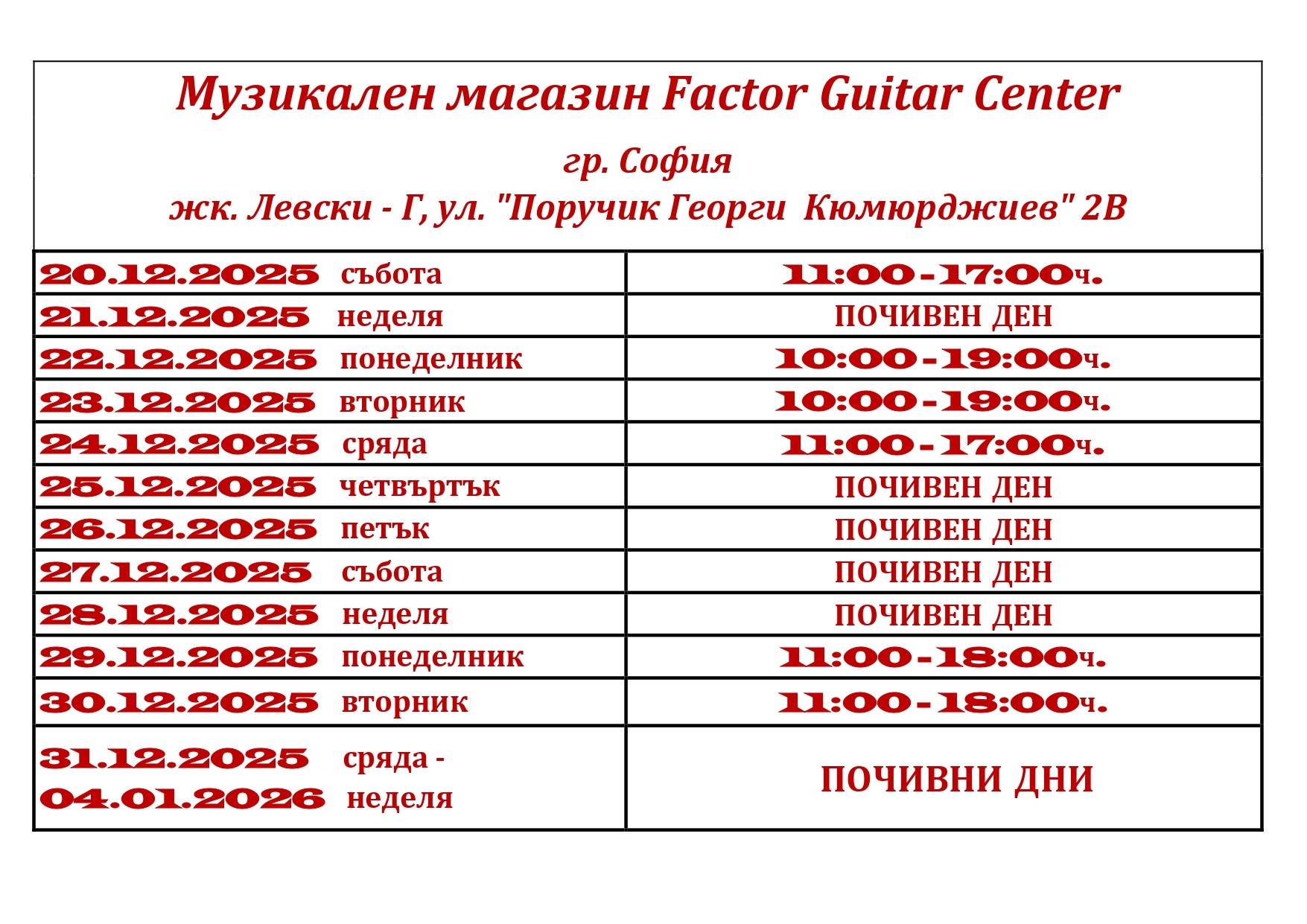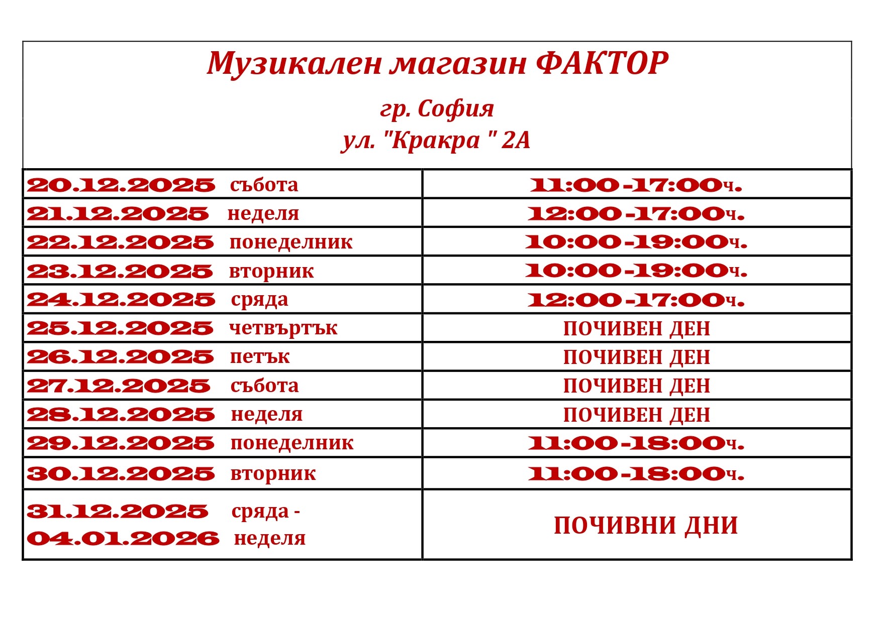 КОЛЕДНО РАБОТНО ВРЕМЕ