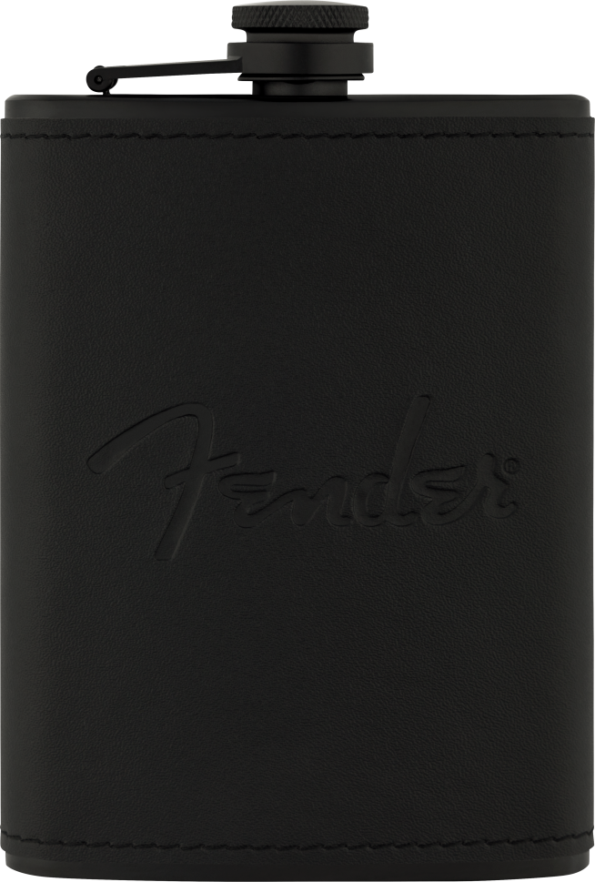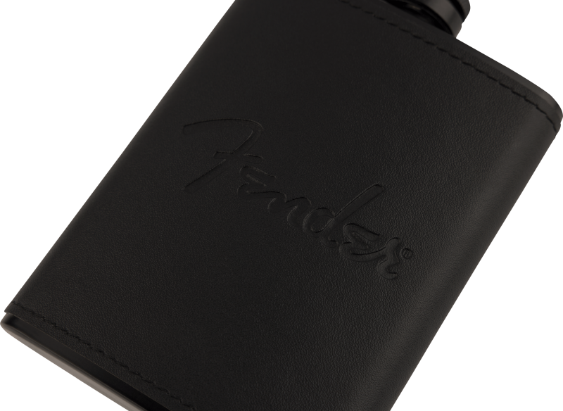 Our Fender™ flask is crafted with sleek sophistication. Fender's black embossed flask is the epitome of cool style. Made from high-quality stainless steel, and wrapped in black vegan leather you will add a touch of timeless elegance to your bar. The deep black color with embossed Fender logo is the perfect vessel for all your favorite libations!