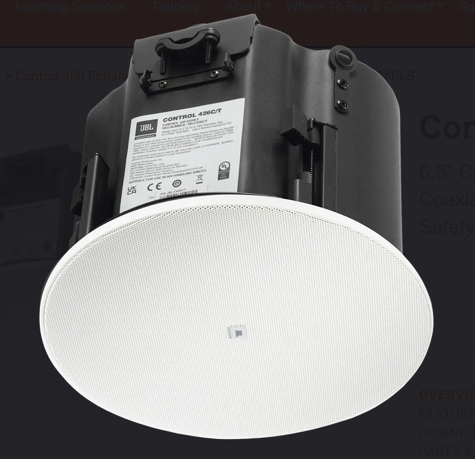The JBL Control 426C/T-LS is a two-way coaxial ceiling loudspeaker, featuring a 6.5” woofer and integrated enclosure that is ideal for installation in most ceiling plenum spaces. Certified to the UL1480 Standard, the Control 426C/T-LS is suitable for life safety applications. Integrated CRBI™ technology provides 110° of consistent, full, rich sound to the listening area. A full-face magnetic grille blends seamlessly with modern decors and optional black and square grilles are available. Mechanical improvements include redesigned terminal covers with top and side cable entry ports and an extremely reliable new dogear design that works with a wide range of ceiling thicknesses. The JBL Control 426C/T-LS includes a transformer to support both 70V/100V and low impedance applications.