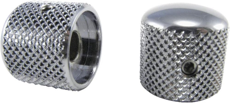 Chrome plated brass for use with 1/4 inch potentiometers. The locking screw needs a 5/64 inch Allen key.